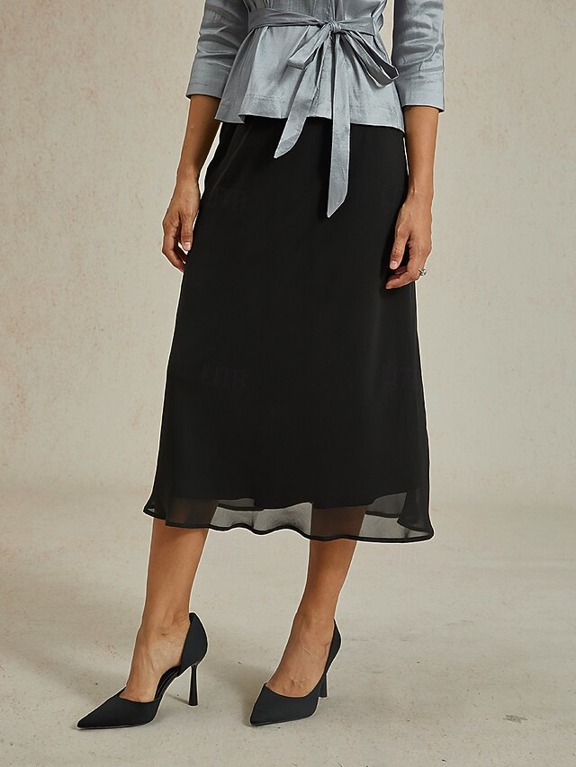 More information about Women's Loose Elegant Midi High Waist Skirts Inelastic Black Summer Chiffon