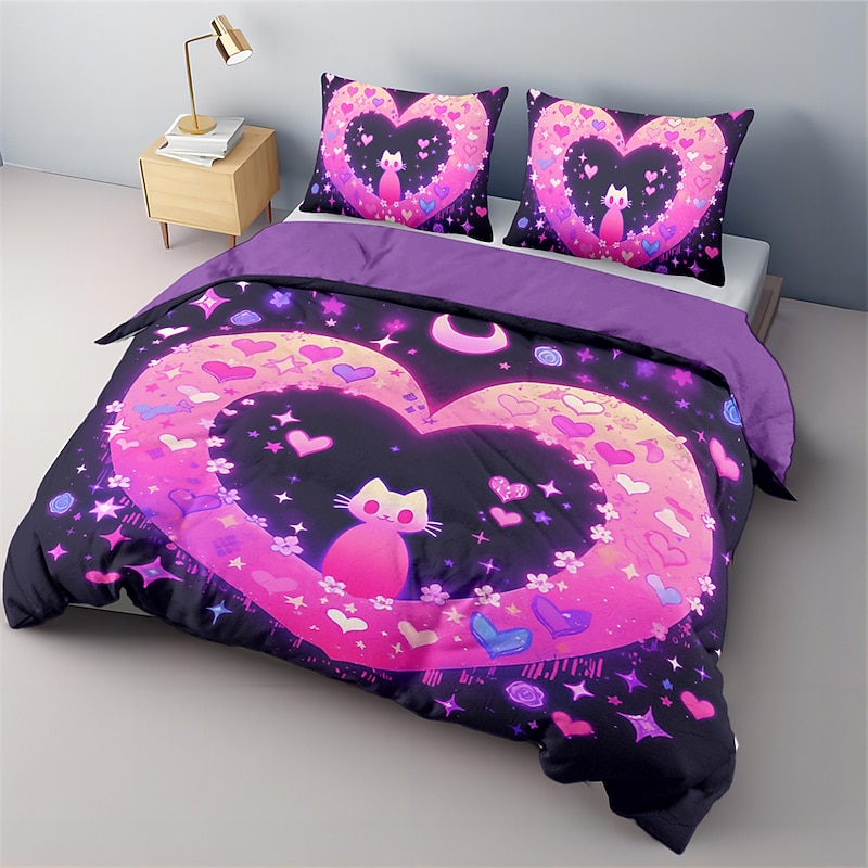 Designer Cat Heart Pet Portrait Pattern Duvet Cover Set Comforter Set Soft 3-Piece Luxury Cotton Bedding Set Home Decor Gift King Queen Duvet Cover 1