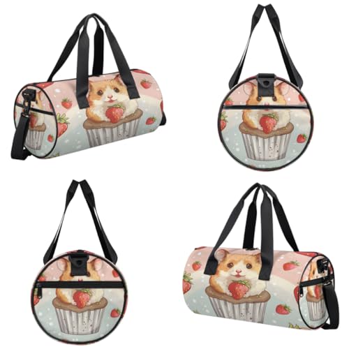 HOT ! Cute Hamsters Love Grass mold Round Barrel Sports Fitness Bag, Travel Luggage Bag, Reusable Handbag, Suitable For Men and Women