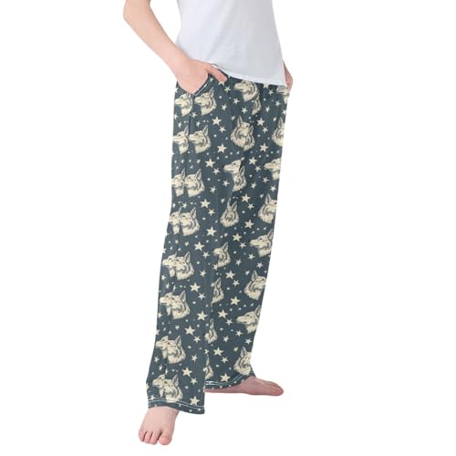 HOT ! ALAZA Wolf and Stars Pajama Pants Soft Long Sleep Pants Lounge Pajama Bottoms with Pockets
