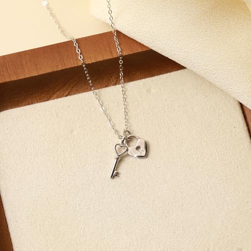 HOT ! Heart Key Charm Necklace for Women Men Gold Plated Heart Lock and Key Pendant Necklace Friendship Necklace S925 Sterling Silver Padlock Choker Chain Necklace for Mom Couples Daughter Birthday Christmas jewelry gifts