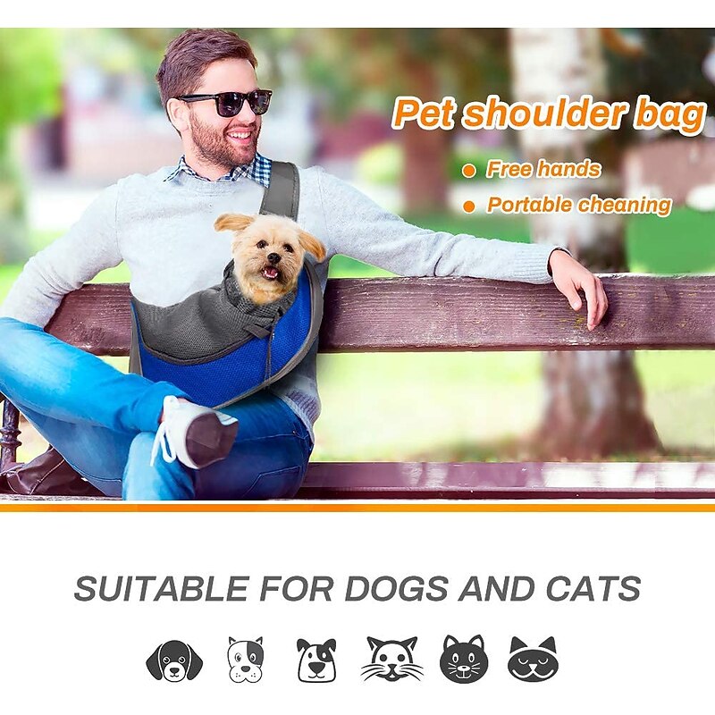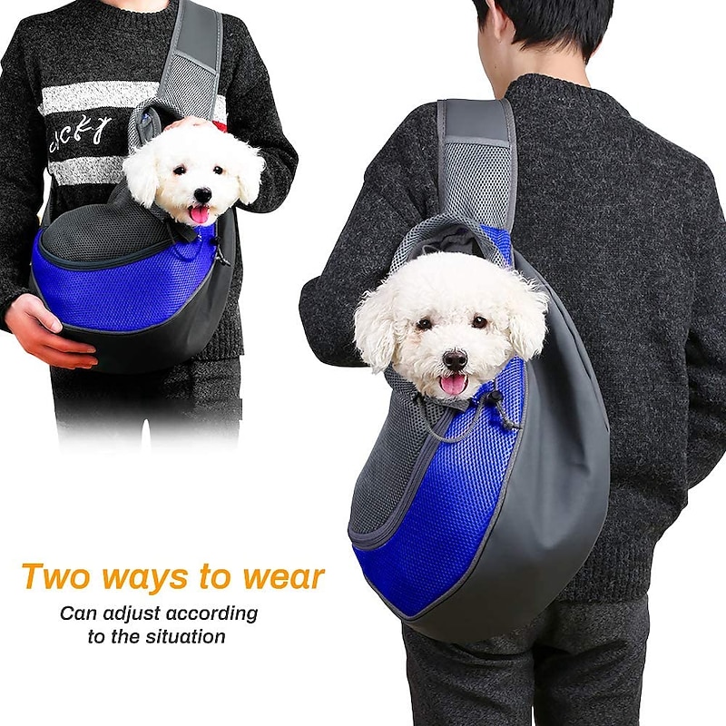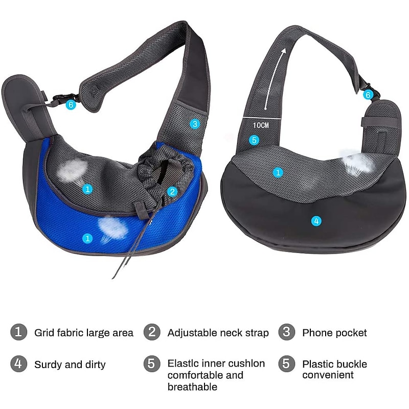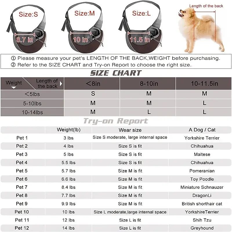 Highlights Safety for Your Pet: This pet carrier hold your pet safely, it is better to stroking your puppy before put it into the bag, attach the security lock to the ring on the collar or harness, which helps keep your pet safe if unexpected falling happens. Applicability: The pet slings features a adjustable strap so it is suitable for different height/weight pet lovers.It is more suitable for puppies under 12kg,not for large dogs. Convenient: You can carry your pet out when you go hiking , travelling , shopping , cycling or go outside wherever . Unfortunately if your pet were injured ,our pet carrying pouch is also a good choice. Also there is a pocket to hold your phone, keys or treats,poop bags. Portable & Breathable : This pet carrier bag is made of not so thick but stable breathable fabric , keep your pet comfortable but not hot inside it. The best choice in the summer . The puppy carrier purses also easy to clean any pet hair and dirty. Adjustable Open Size : If your pet sunk into the bag or over it, you can move the belt to change the size of the opening to fit different sizes of the pet.