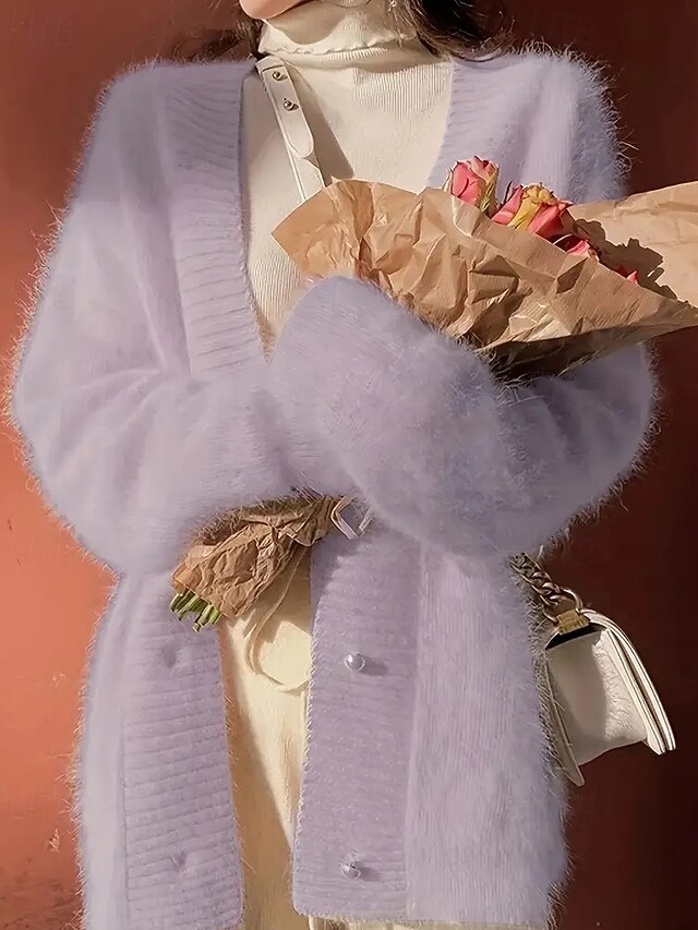 More information about Women's Sweater Cardigan Elegant Fashion Streetwear Solid Color V Neck Pocket Knitted Long Sleeve Regular Tops Knit Outdoor Daily Weekend Purple Fall Winter
