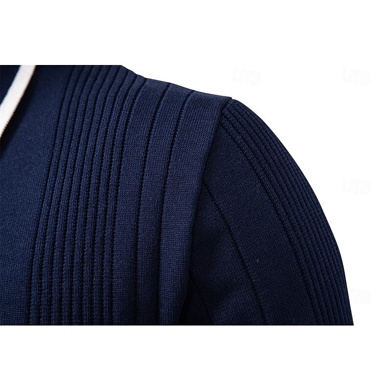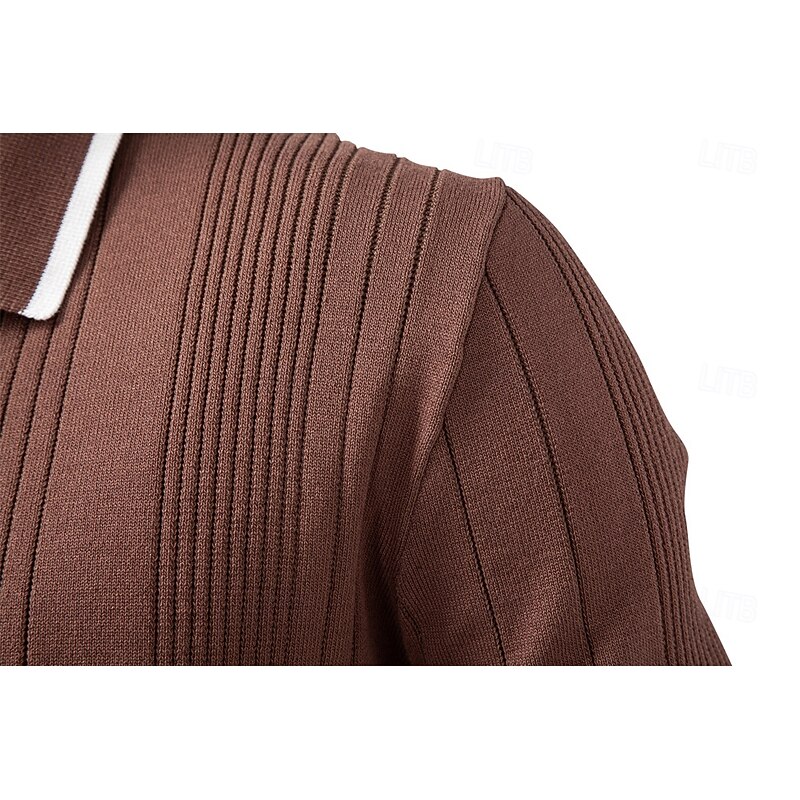 More information about Men's Pullover Sweater Jumper Knit Regular Tops Color Block Buttons Solid Color Polo Collar Vintage Daily School Home Clothing Apparel Spring Fall Blue Brown S M L