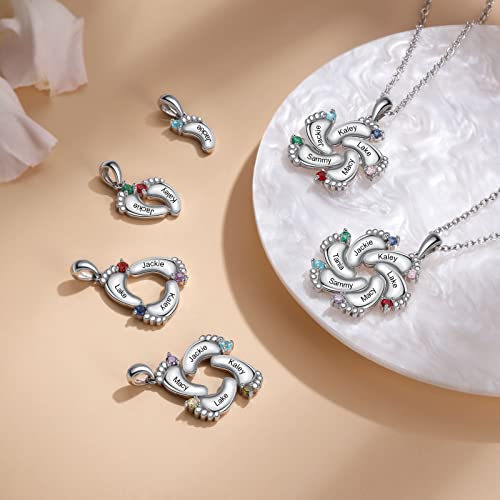 Personalized Mother Necklace with Birthstone 1-6 Names Custom Feet Pendant Necklace for Mom Customized Family Jewelry for Mothers Day 5