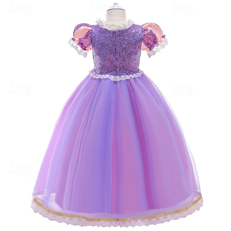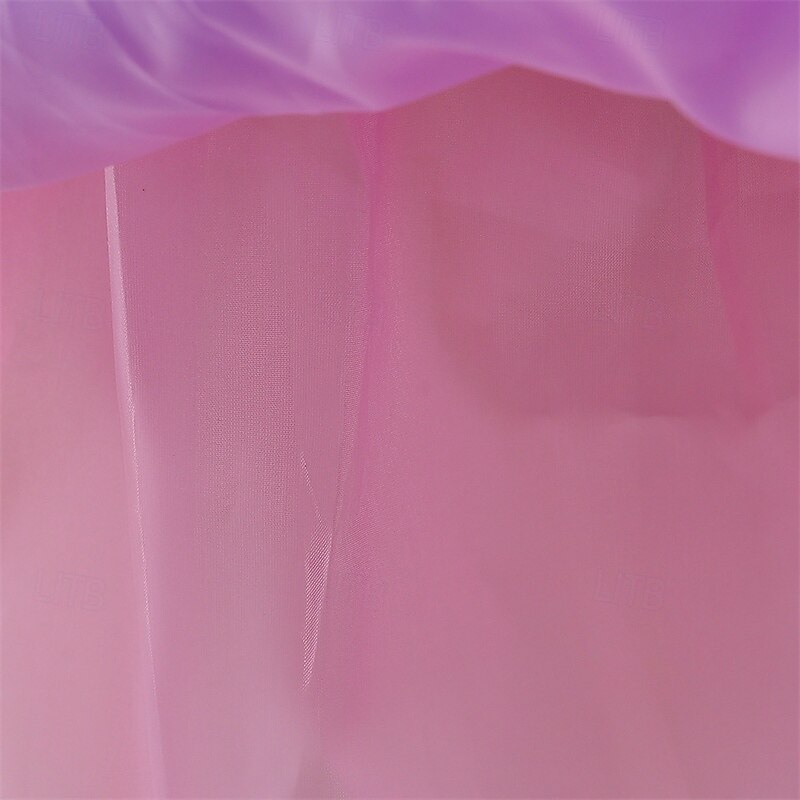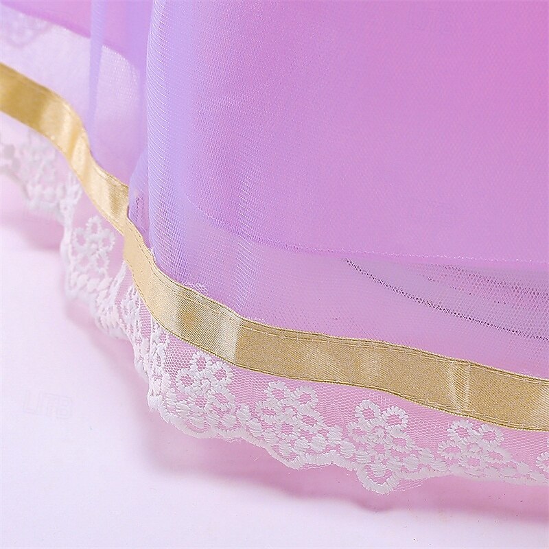 More information about Kids Girls' Dress Color Block Short Sleeve Outdoor Casual Lace Fashion Costume Polyester Midi Casual Dress A Line Dress Tulle Dress Summer Spring 4 years+ Pink Purple