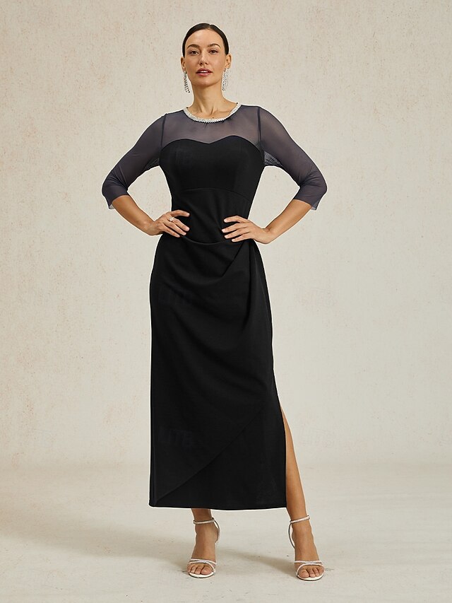 More information about Women's Maxi Dress Sheath Dress Elegant Party Formal Solid Color 3/4 Length Sleeve Crew Neck Black Summer Spring Fall