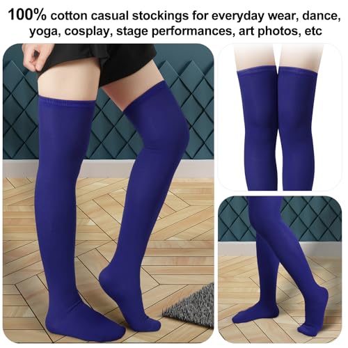 1 Pair Thigh High Socks, Cotton Soft Knee High Long Stockings Leg Warmers for Women Girls Christmas Cosplay (Royal Blue), 23.6inch 3