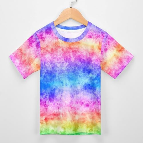 HOT ! Kids Tie Dye T-Shirt Short Sleeve Mesh Top Lightweight Pullover Soft Outfit for School Play Travel
