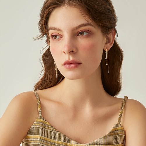 • Hypoallergenic & Long-lasting Chain Earrings for Women: This pair of nickel free earrings is made of sterling silver post and 14k gold plated, won't turn your ears green. These dangling threader earrings are also hypoallergenic, making it a desirable choice for people with sensitive skin.
