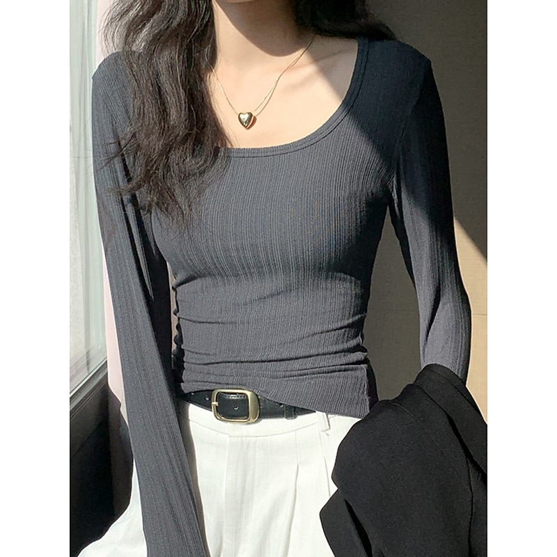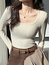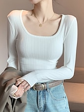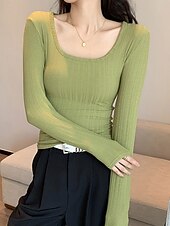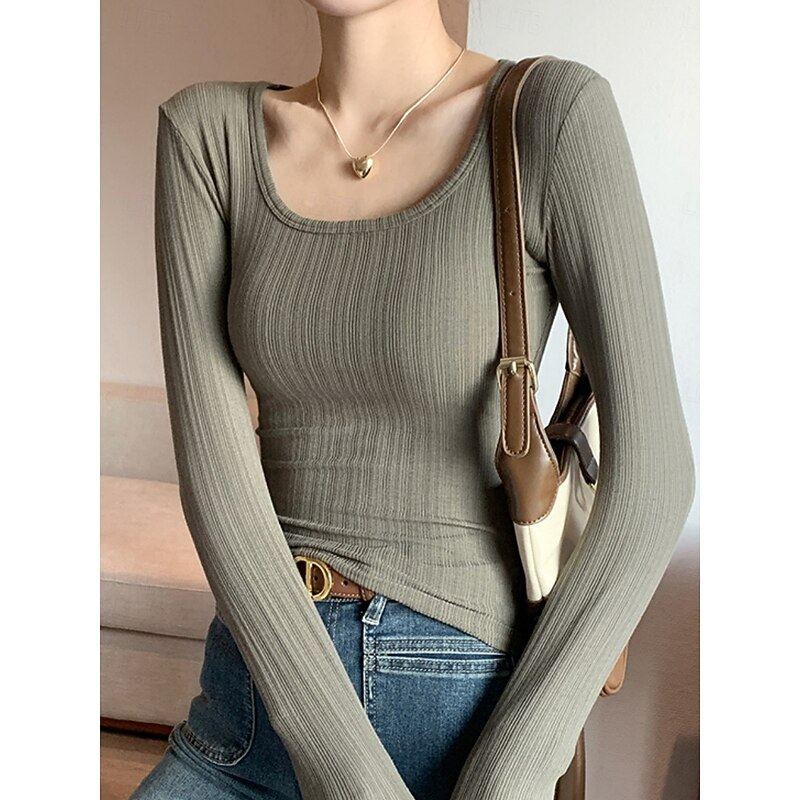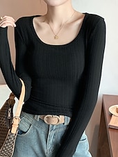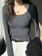 $12.99 - Stylish women's solid color blouse Long sleeve scoop neck basic for daily wear in black white army green dark gray suitable for fall and winter 2025. Shop for cheap Plain Tops online? Buy at lightinthebox.com on sale today!