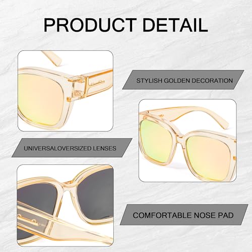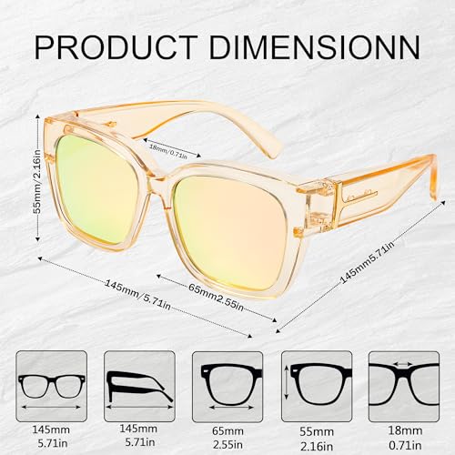 FancyPink Womens Mirrored Sunglasses Fit Over Glasses for Women Polarized -Trendy Large Square Sunglasses w UV Protection 5