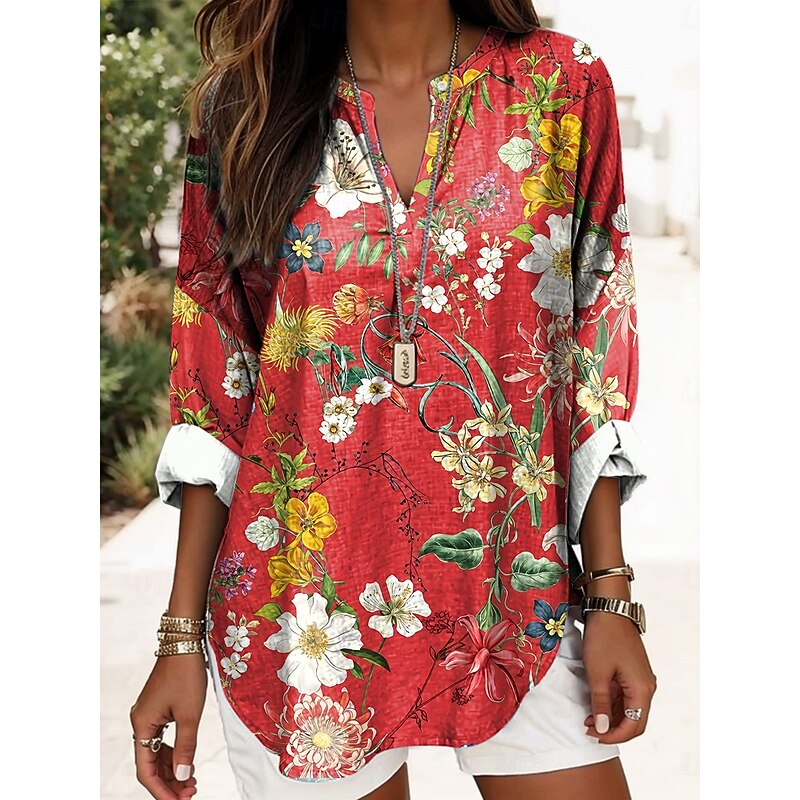 Women's Blouse Tunic V Neck Long Sleeve Boho Casual Floral Graphic Abstract Elegant Daily Regular Tops Daily Print Red Blue Purple Green 10