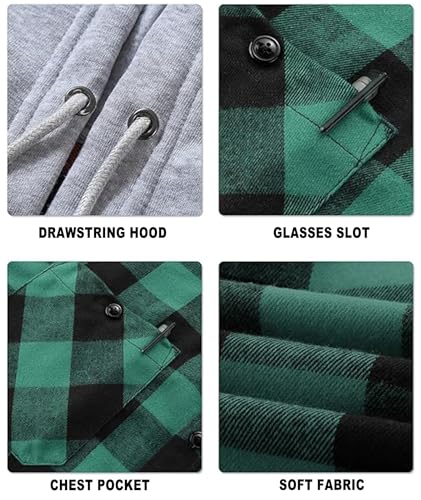 Mens Flannel Hooded Shirt Long Sleeve Fashion Plaid Hoodie Button Down Shirts with Pocket 4