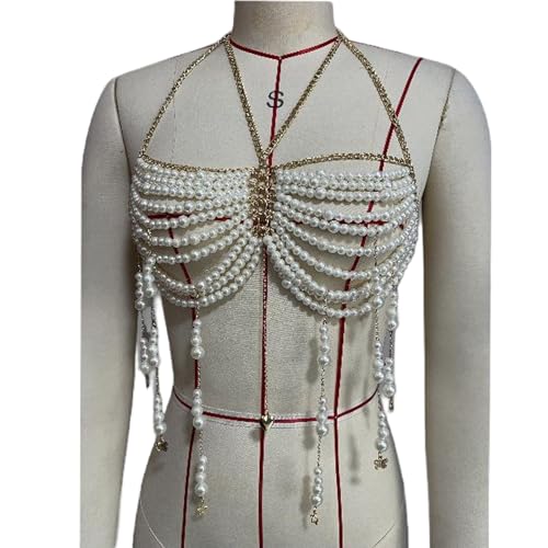 Sexy White Pearl Tassel Bra Body Chain Jewelry Summer Beach Beaded Underwear Chain Wedding Festival Rave Pearl Bralette Chest Chain Jewelry for Women 1