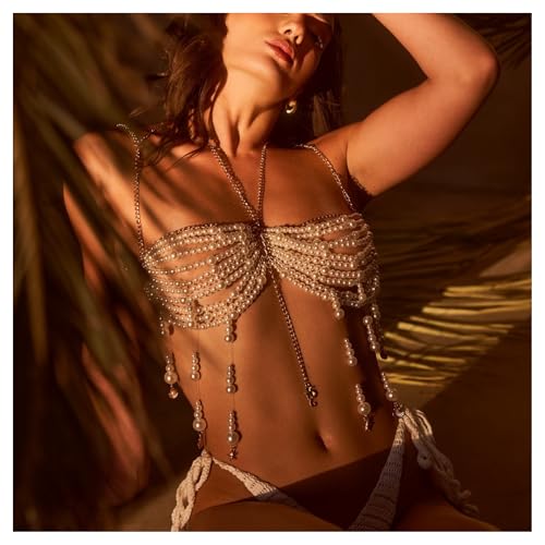 More information about Sexy White Pearl Tassel Bra Body Chain Jewelry Summer Beach Beaded Underwear Chain Wedding Festival Rave Pearl Bralette Chest Chain Jewelry for Women