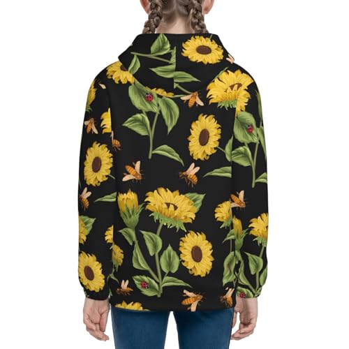 Bees and Sunflowers Kids Pullover Hoodies Boys Zip Up Sweatshirts Girls Athletic Clothes with Pocket 4
