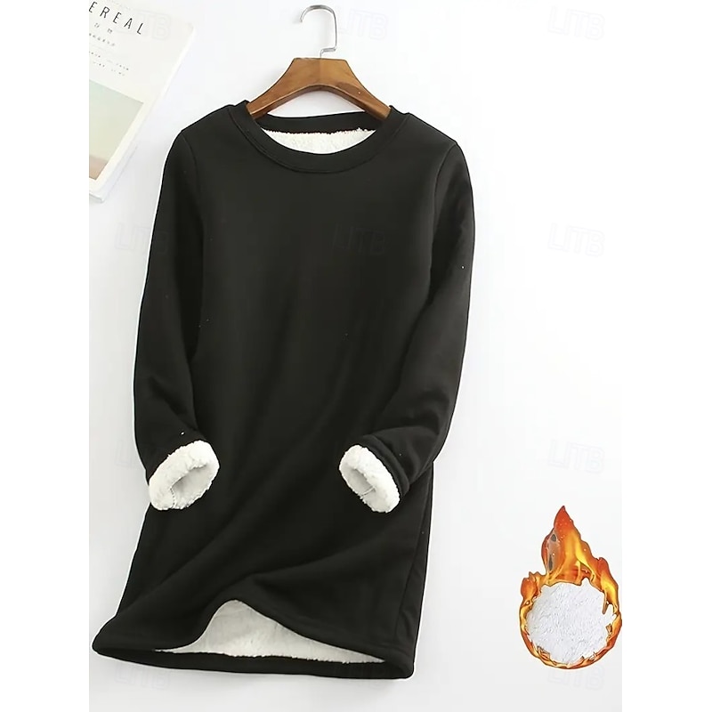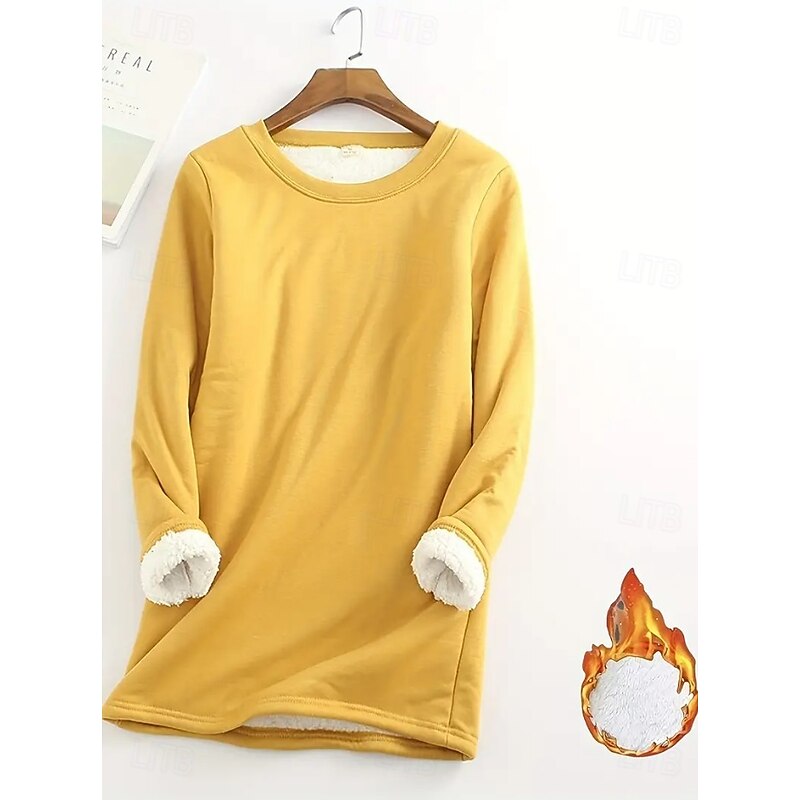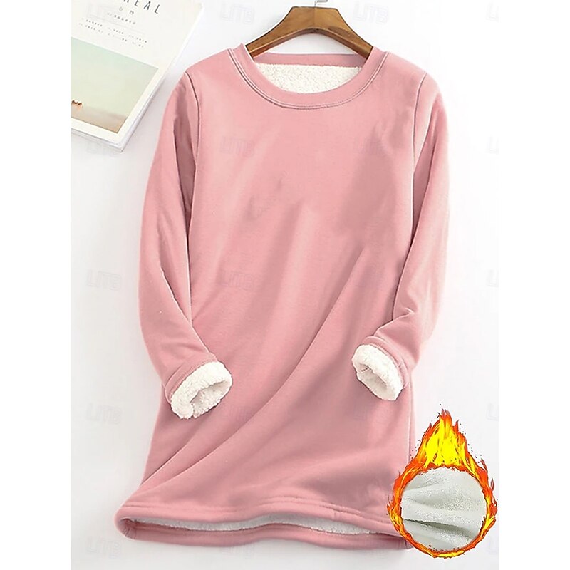More information about Women's Pullover Sweatshirt Plain Warm Casual Fuzzy Long Sleeve Crew Neck Round Neck Regular Tops Street Casual Light Pink Black Yellow Pink Blue Spring Fall Winter