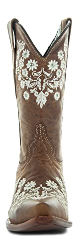 Soto Boots Women's Floral Embroidery Cowgirl Boots, Geniune Leather Handcrafted Boots M50059 Brown 5