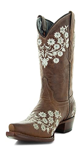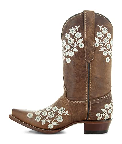 Soto Boots Women's Floral Embroidery Cowgirl Boots, Geniune Leather Handcrafted Boots M50059 Brown 7