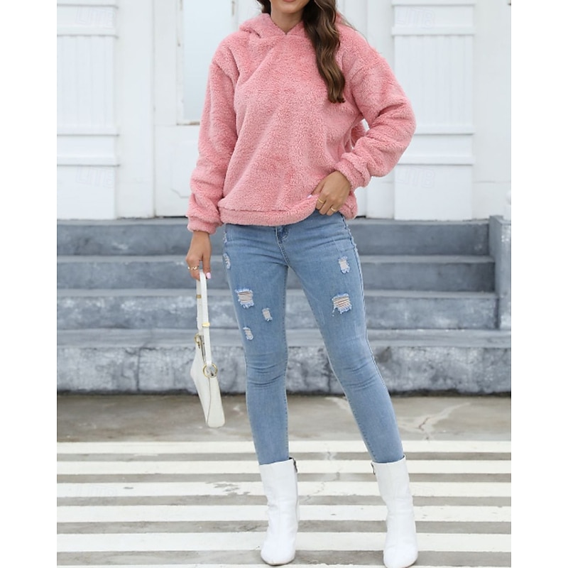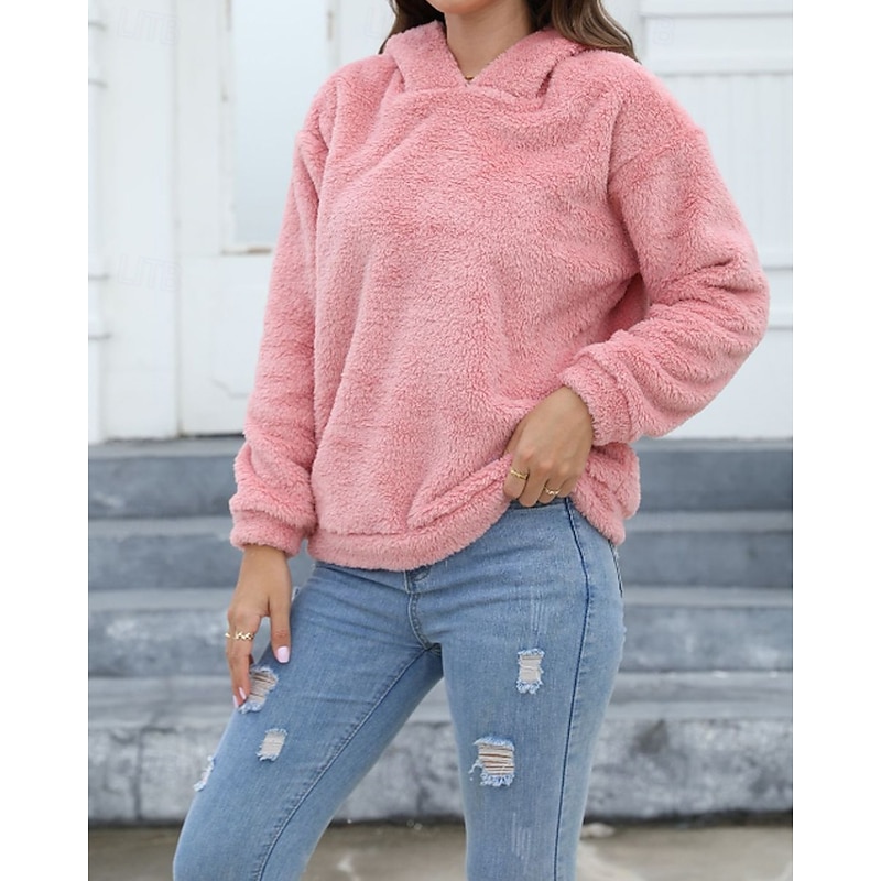 More information about Women's Pullover Hoodie Sweatshirt Plain Streetwear Casual Long Sleeve Hooded Regular Tops Street Holiday Going out Pink Winter