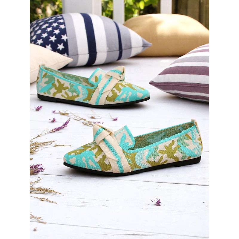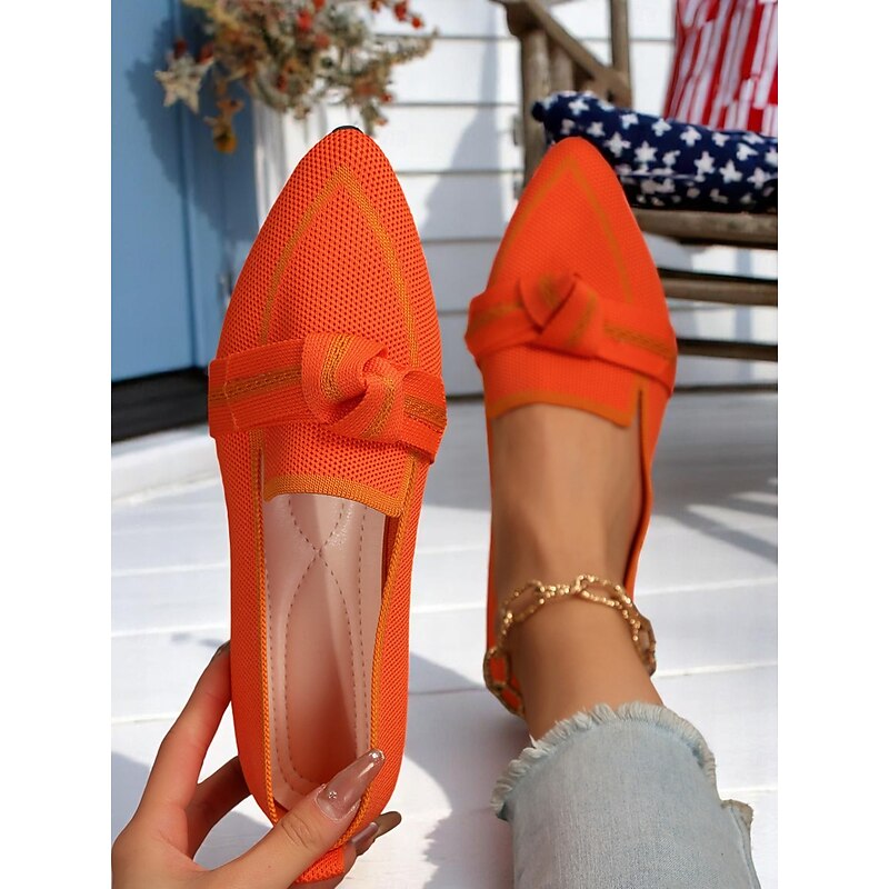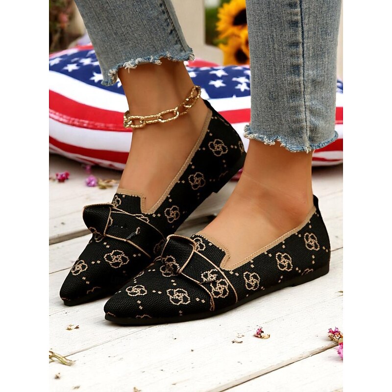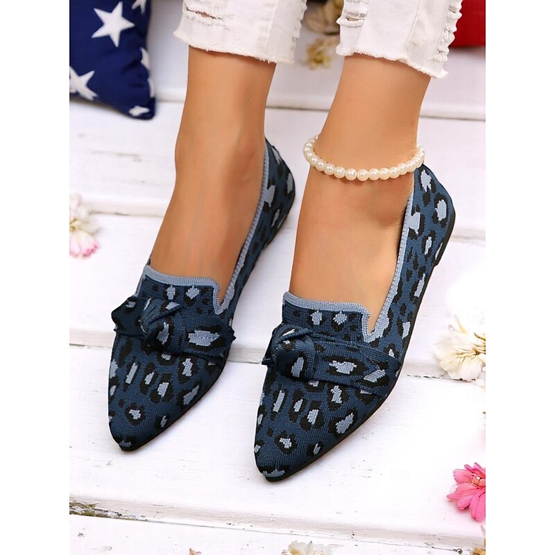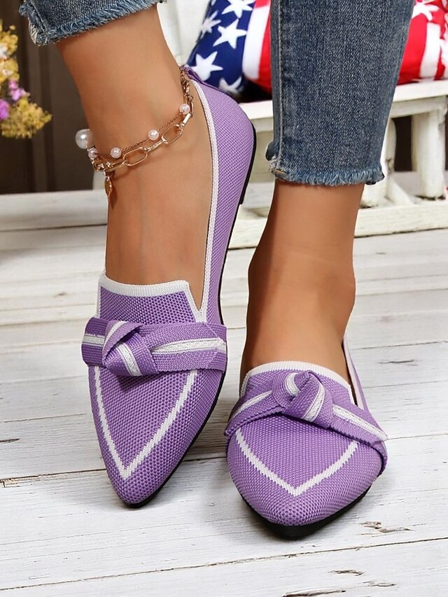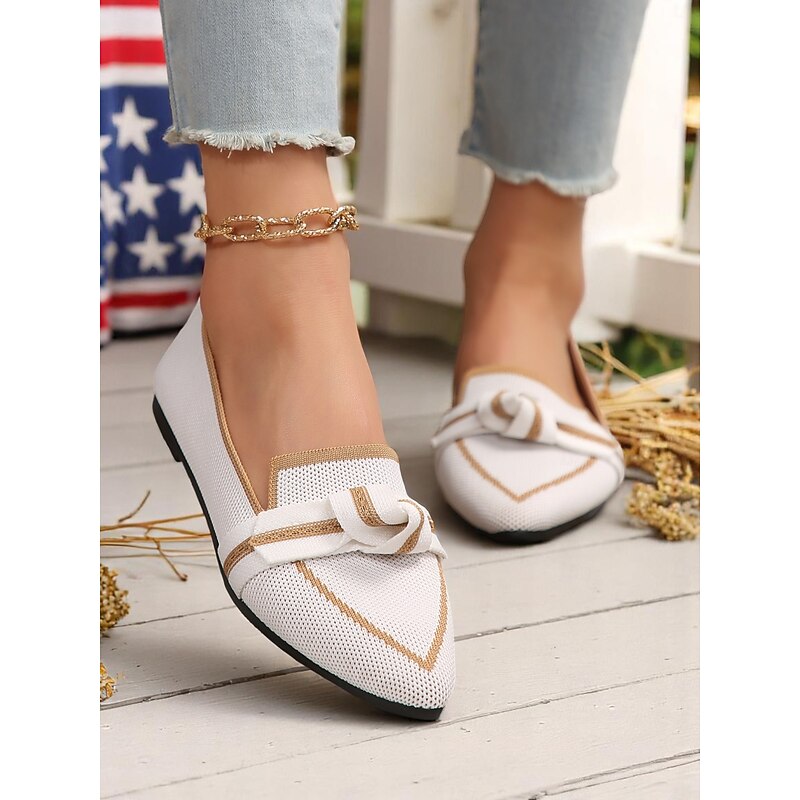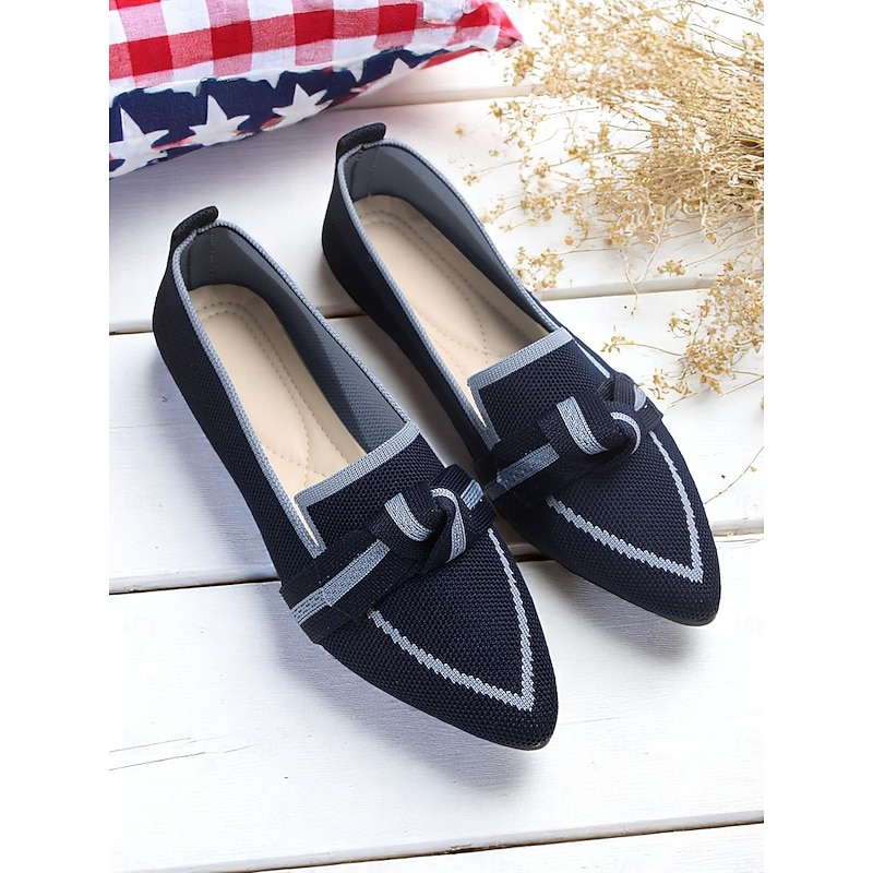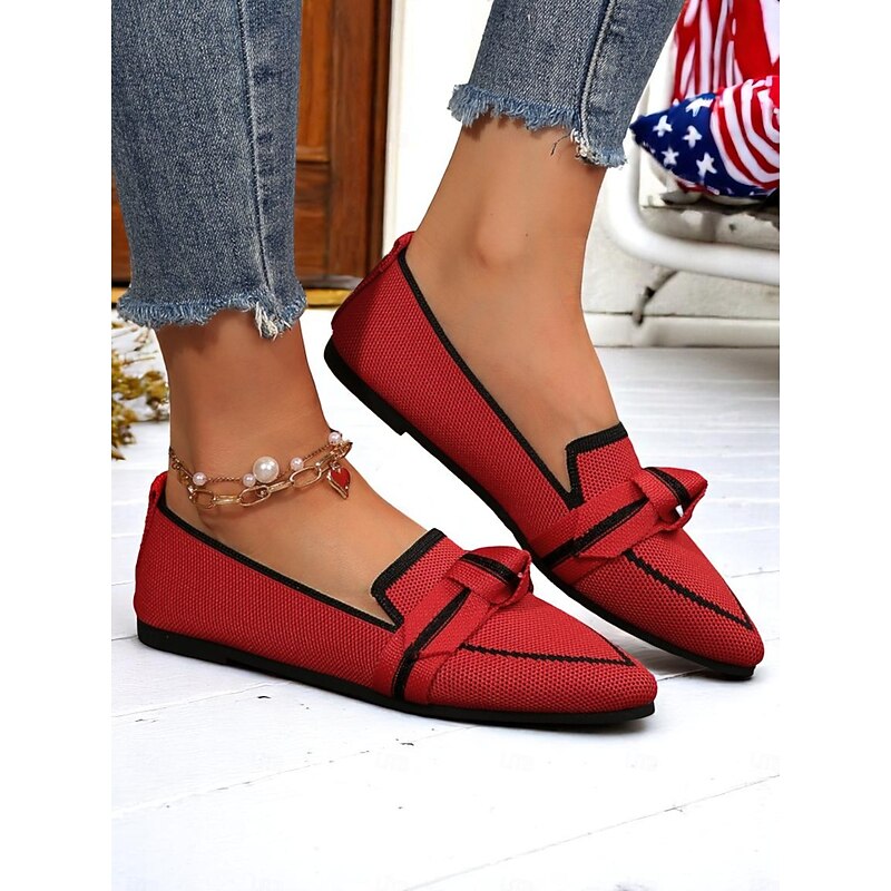 HOT ! Women's Patriotic Knit Flats – Pointed Toe Flat Shoes with Bow Detail for Independence Day, Summer Picnics & Casual Wear