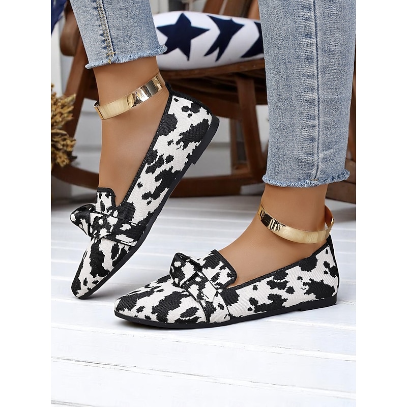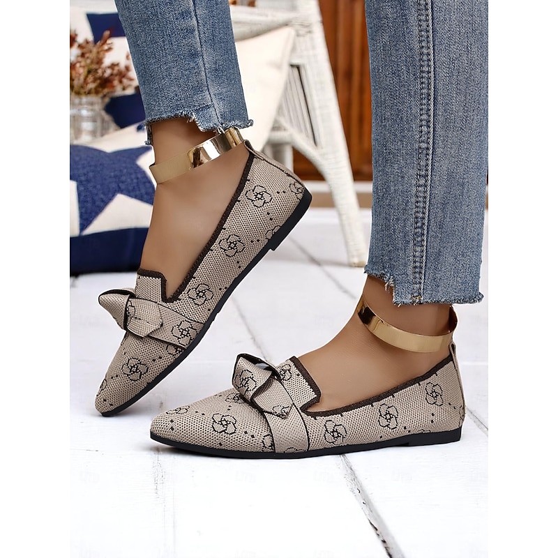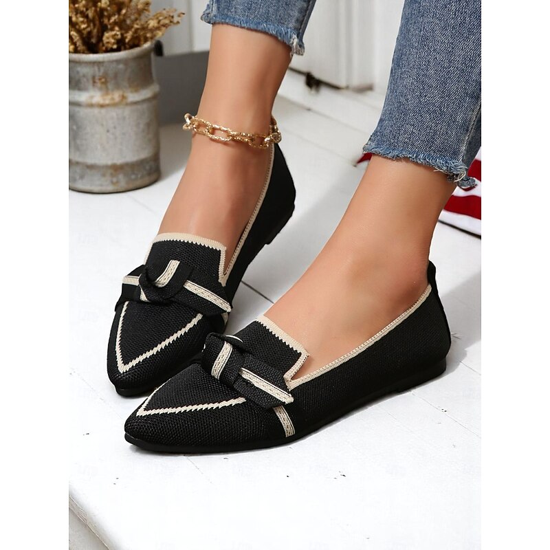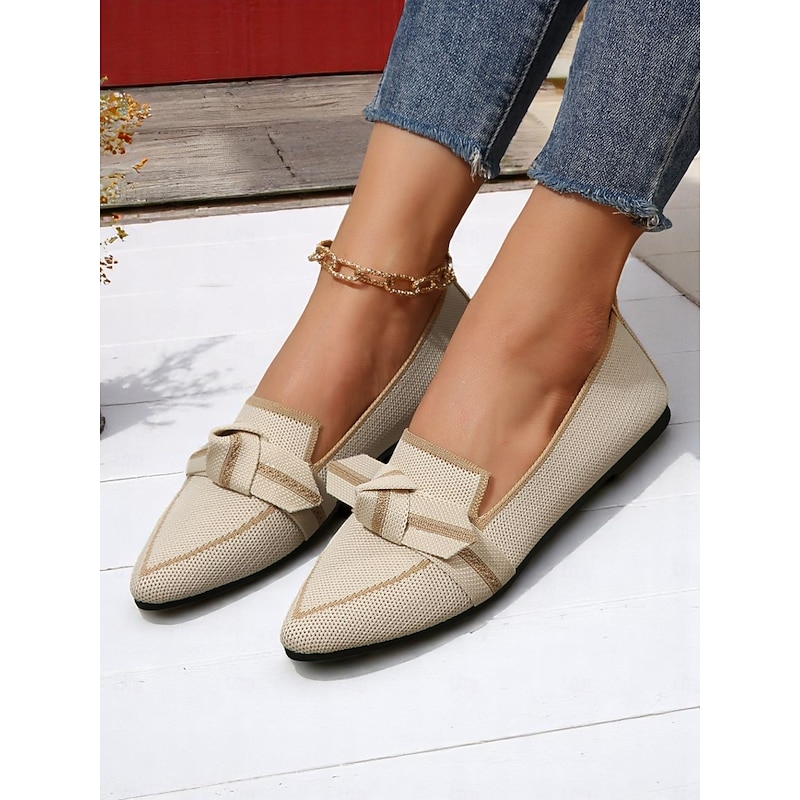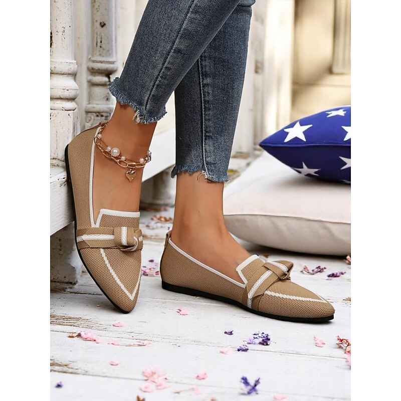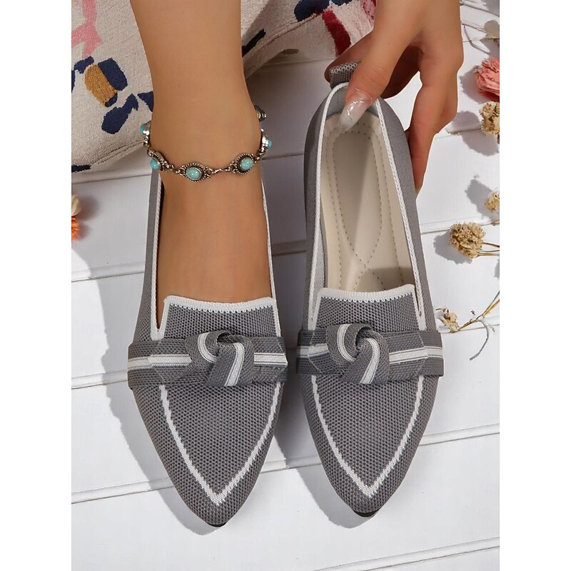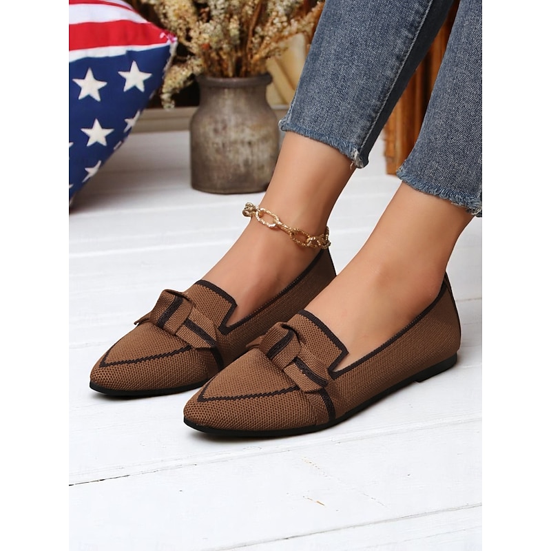 HOT ! Women's Patriotic Knit Flats – Pointed Toe Flat Shoes with Bow Detail for Independence Day, Summer Picnics & Casual Wear