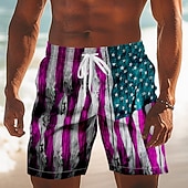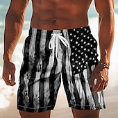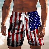 HOT ! Independence Day Men's US Flag Patriotic Fourth of July Swim Trunks Swim Shorts Board Shorts Mid Waist Hawaiian Holiday Side Pockets Mesh Lining Elastic Drawstring Waist Designer Clothing Apparel