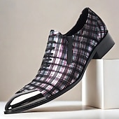 More information about Men's Plaid Leather Lace-Up Oxford Shoes–100% Premium Cowhide with Gold Tip Glossy Toe Cap for Formal Events and Business Wear