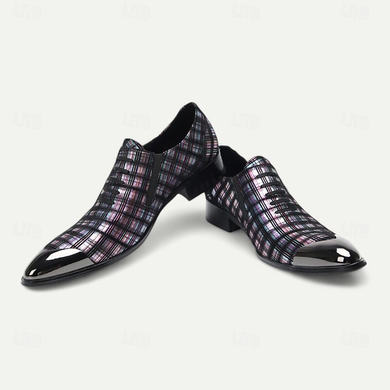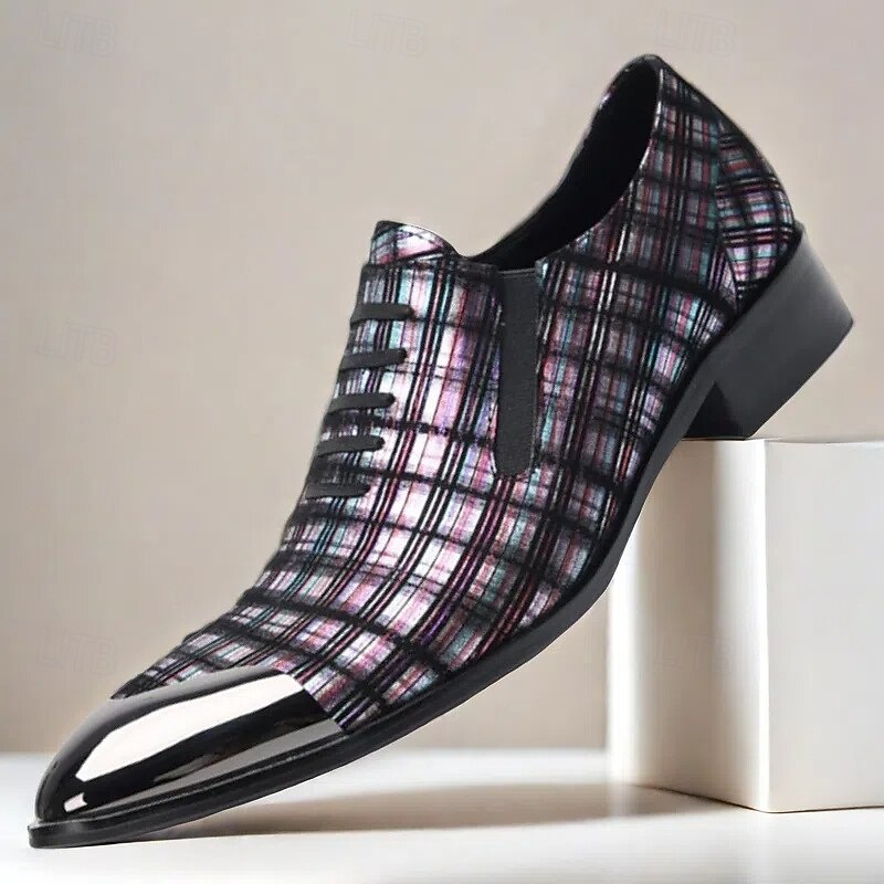 Men's Plaid Leather Lace-Up Oxford Shoes–100% Premium Cowhide with Gold Tip Glossy Toe Cap for Formal Events and Business Wear 1
