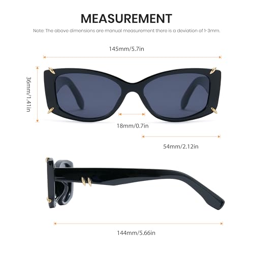 • 100% UV400 Protection -- Keep your eyes protected with women's UV401 sunglasses, blocking harmful UVA/UVB rays. Whether for driving, beach days, or city strolls, these lenses ensure clear vision and long-term eye care.