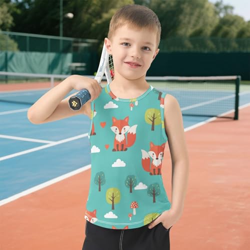 J JOYSAY Cartoon Fox Mushroom Boys Tank Top Sleeveless Muscle Shirts Quick Dry Active Workout Sport Kids T-Shirts 3-15T 6