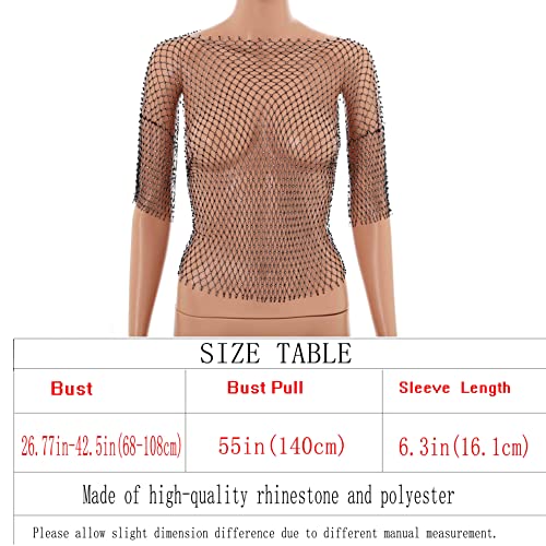 More information about Formery Mesh Rhinestone Cover Ups Black Crewneck See Through Coverup Top Music Festival Party Cover Ups Body Chain for Women