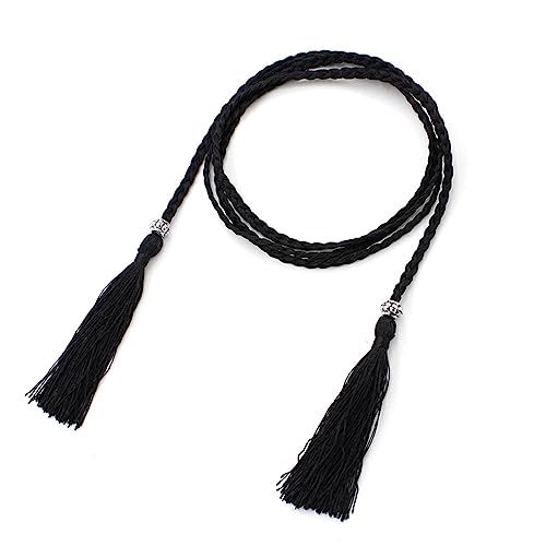 HOT ! Ladies Bohemian Style Waist Belt Delicate Tassels Decors Braided Belt for Dress Women Seaside Waist Belt, Blue
