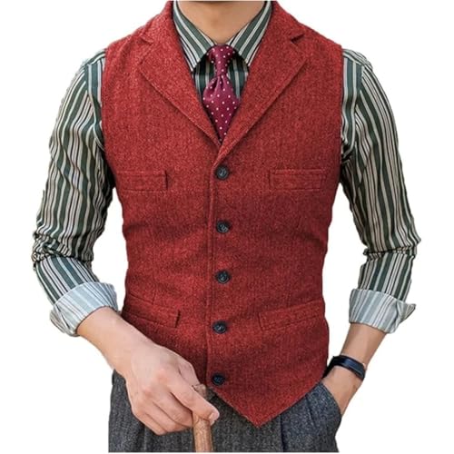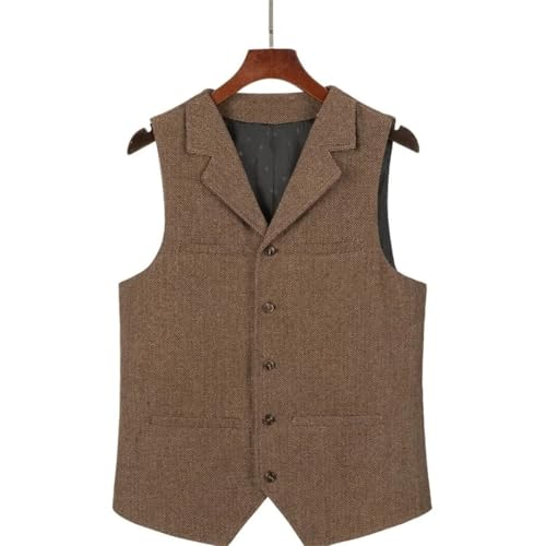 Men's Vintage Slim Single Breasted Fit Wool Herringbone Tweed For Wedding & Business Wearing Vest 6