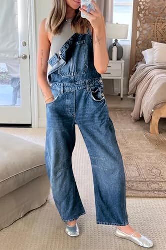 More information about PLNOTME Womens Denim Bib Overalls Barrel Leg Adjustable Strap Jean Pants Jumpsuits with Pockets