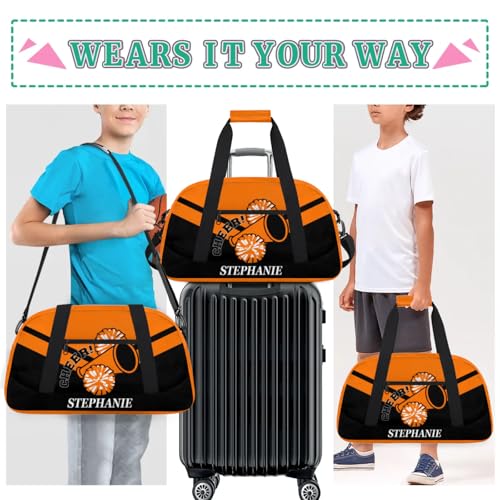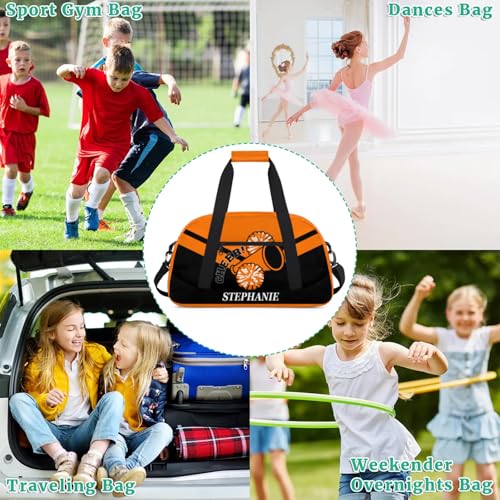 Kids Duffle Bag Personalized Gym Bag Overnight Bags, Ideal for Travel and Sports, Suitable for Men Women for Gym, Dance, Yoga, Durable Waterproof Sport Overnight Handbags Cheerleader Orange 5