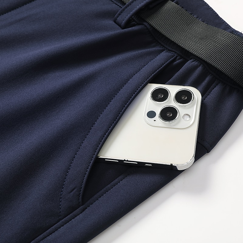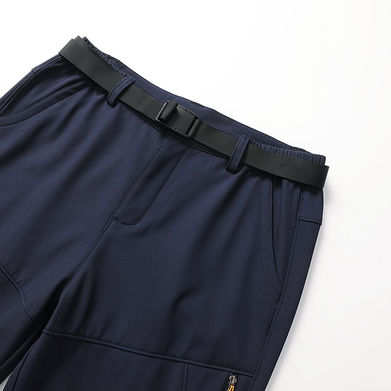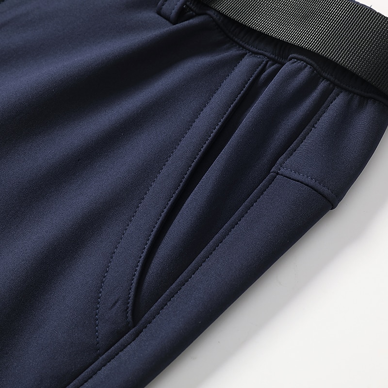 : Crafted from a robust polyester and 12% spandex blend, these men's pants are micro-elastic, offering flexibility and durability. The material is water-resistant and windproof, ensuring protection and comfort in fall and winter weather conditions. Additionally, they feature a fleece lining for enhanced warmth in colder climates.