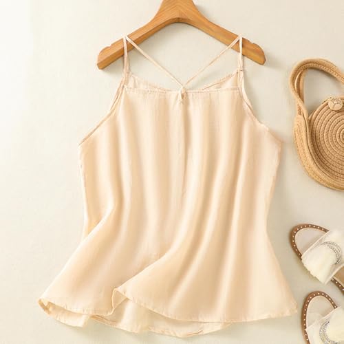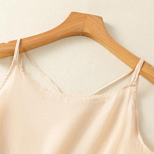 HOT ! Women Cotton Linen Camisole Plain Solid Basic Tank Top Adjustable Spaghetti Straps Silky Soft Sleeveless Sleepshirt