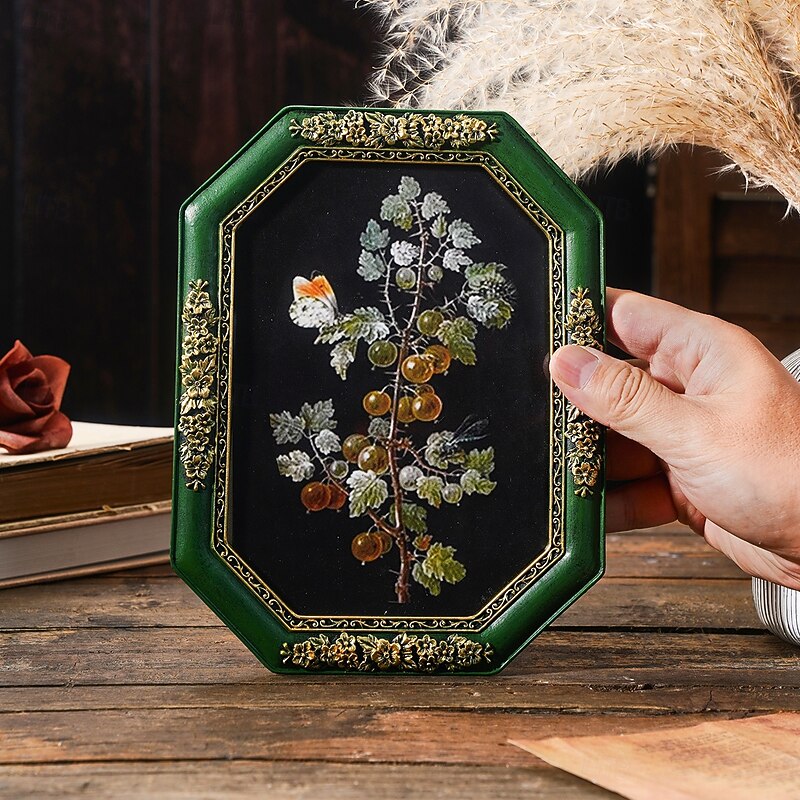 European Vintage Octagonal Resin Photo Frame, Classical Floral Pattern Picture Display Frame for Home Decor and Photography Props 9