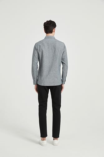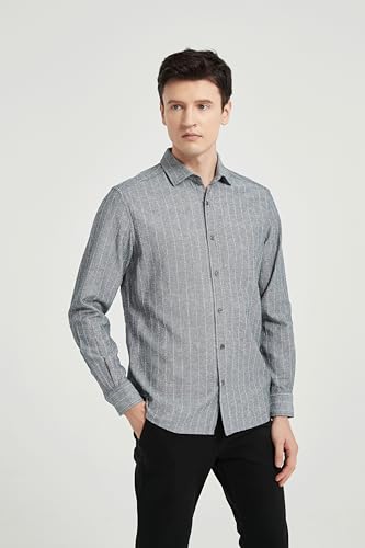 • Men shirts with stripes are cafted from linen and cotton, enhanced the breathability and the durability , less soft than cotton shirts but keep shape better, the linen material has limited flexibility. Please choose our men's linen shirts one size up for optimal comfort.