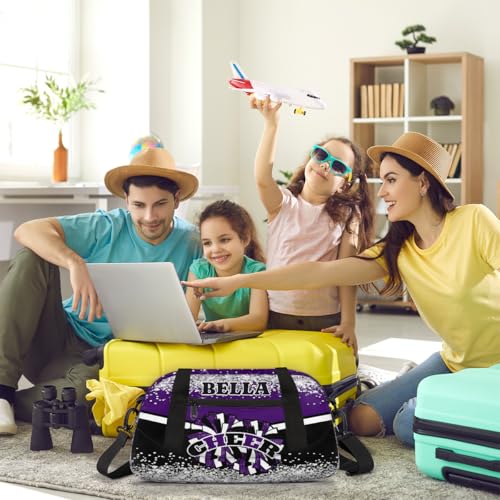 Custom Kids Sports Duffel Bag Glitter Purple Cheer Personalized Dance Gym Bag for Boys Girls Lightweight Weekender Travel Duffle Cheer Bag 7