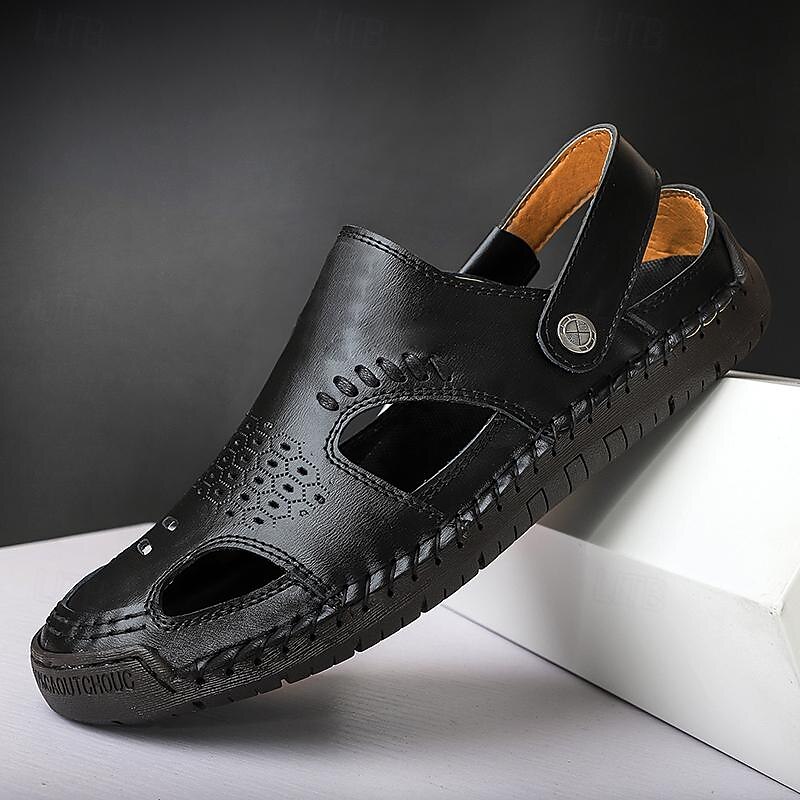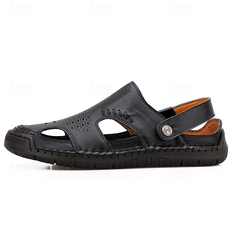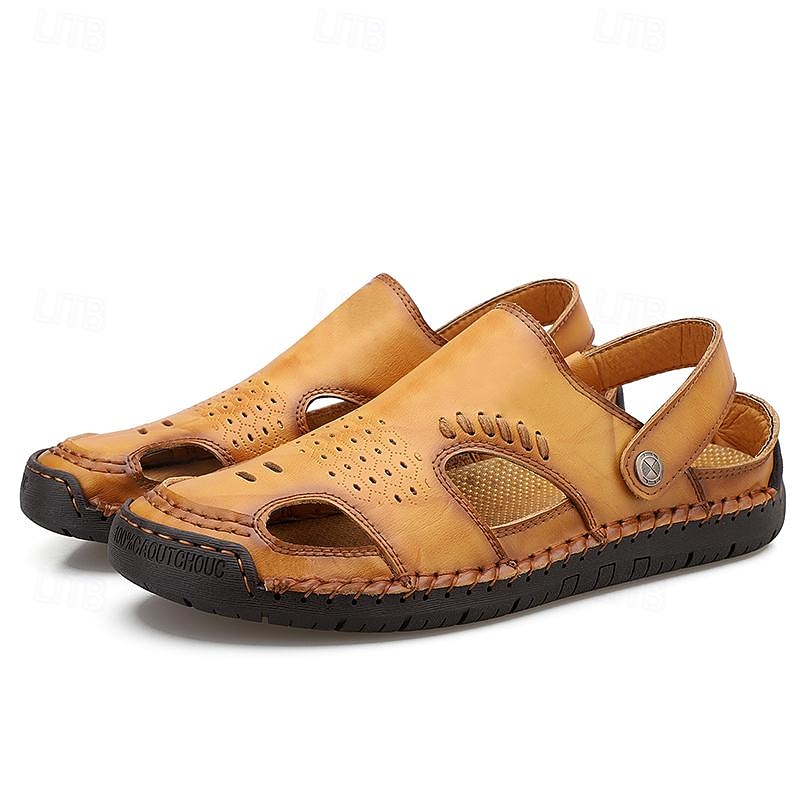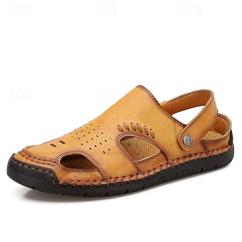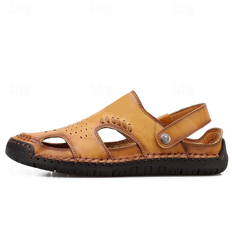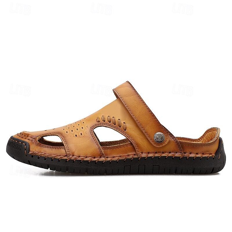 Men's Tan Faux Leather Outdoor Sandals with Adjustable Strap, Breathable Design, and Cushioned Sole for Comfort and Durability - Ideal for Summer Activities 24