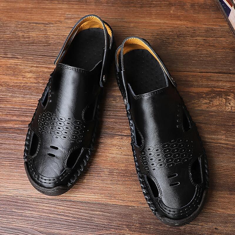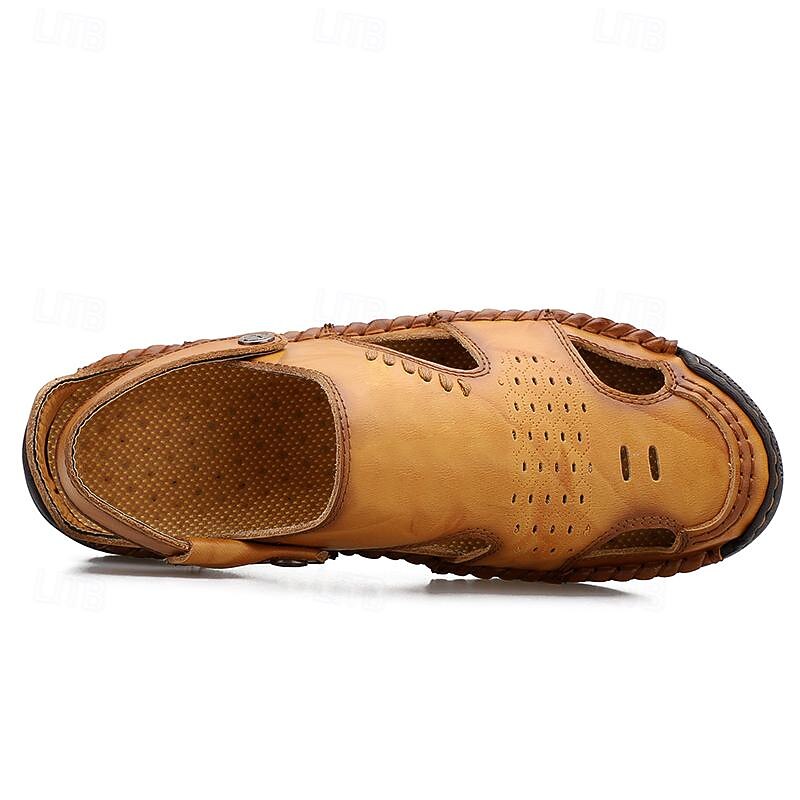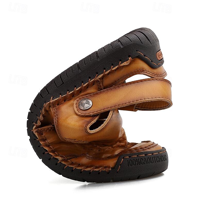 Men's Tan Faux Leather Outdoor Sandals with Adjustable Strap, Breathable Design, and Cushioned Sole for Comfort and Durability - Ideal for Summer Activities 26