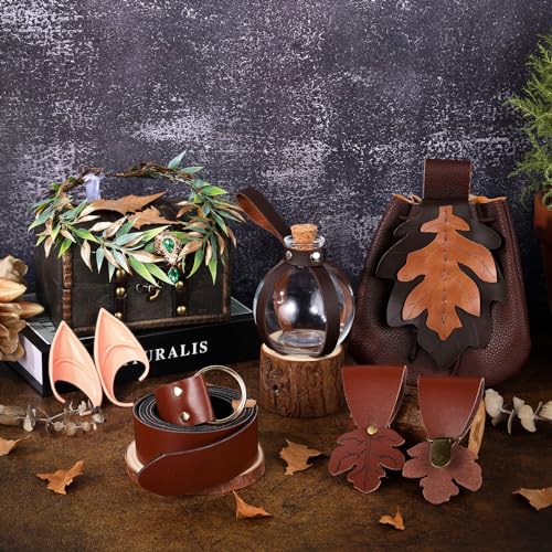 Renaissance Faire Accessories Women-Ren Faire Costume-Renaissance Belt Elf Ears Medieval Belt Pouch Potion Bottles Brown 5