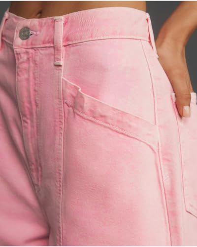 HOT ! Women's Pink Barrel Jeans High Rise Wide Leg Tapered Jeans Baggy Boyfriend Pants with Pockets