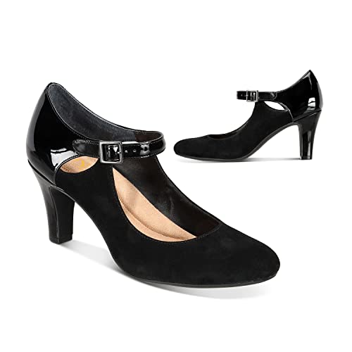 • Good quality material: We use soft and thick insoles for this pair of buckle strap mary janes summer office, providing a comfortable walking experience for your feet and ensuring that you meet your barefoot wearing needs. Women black closed toe mary jane pumps elegant kitten heel is made of durable rubber sole, which is non slip, meeting your daily wearing needs.