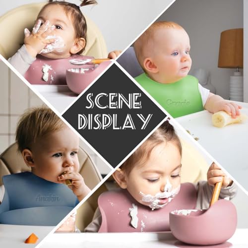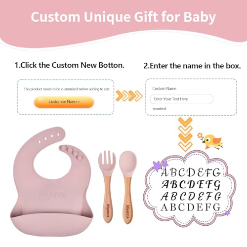 • Personalized Baby Feeding Set:This set includes customized silicone bibs, spoons and forks, all engraved with your baby's name. Our feeding set helps your baby transition to self-feeding with ease!