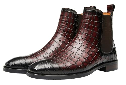 • ALL OCCASIONS: Ideal for business casual or formal dress occasions, these chelsea boots men will dress up any outfit from slacks to jeans. The crocodile leather adds a touch of luxury to any look. With their versatile good looks and convenient slip-on design, these mens chelsea boots are sure to become a wardrobe staple.