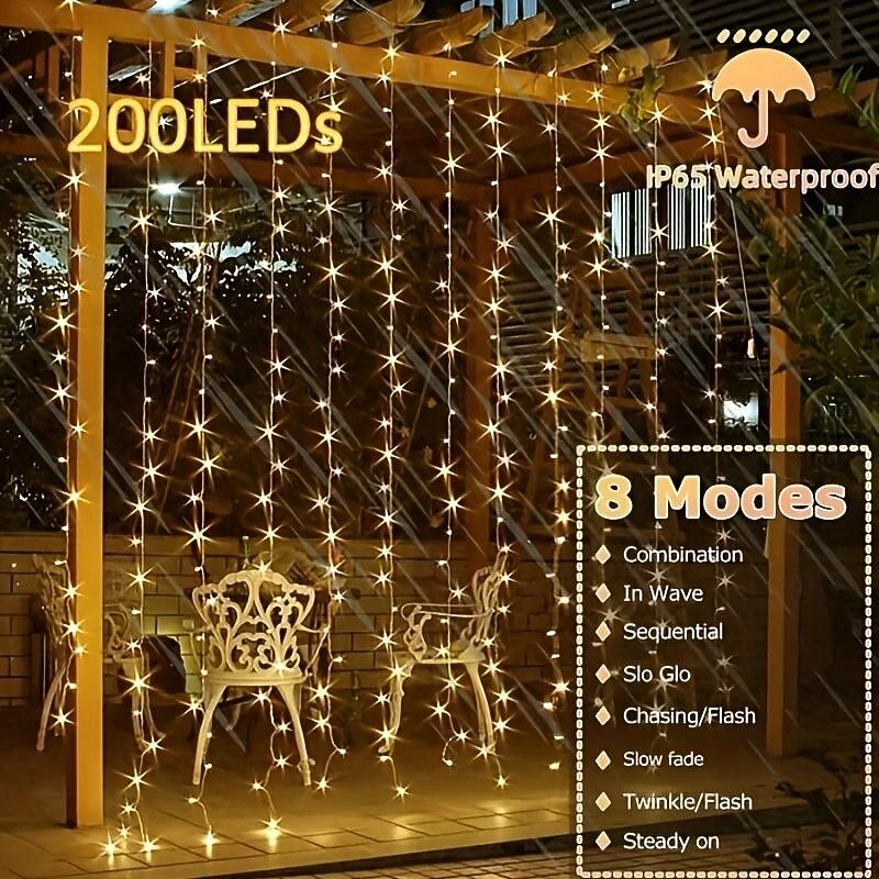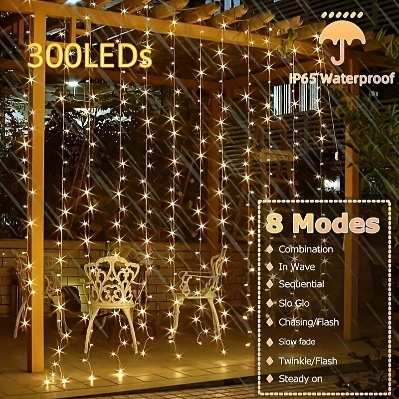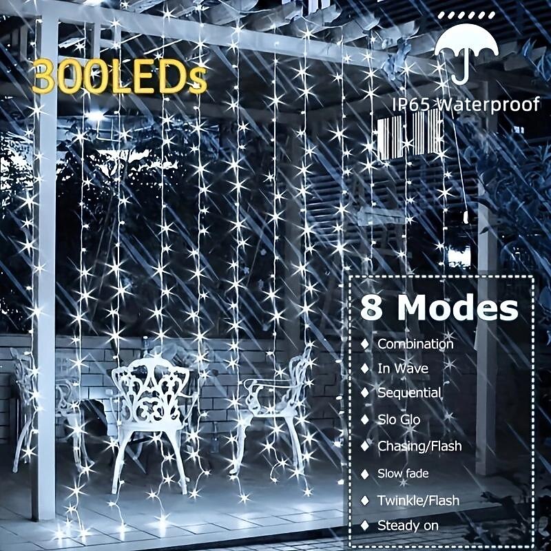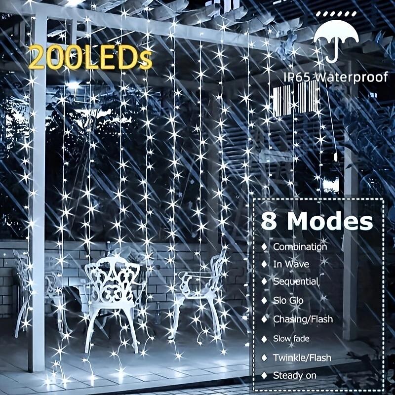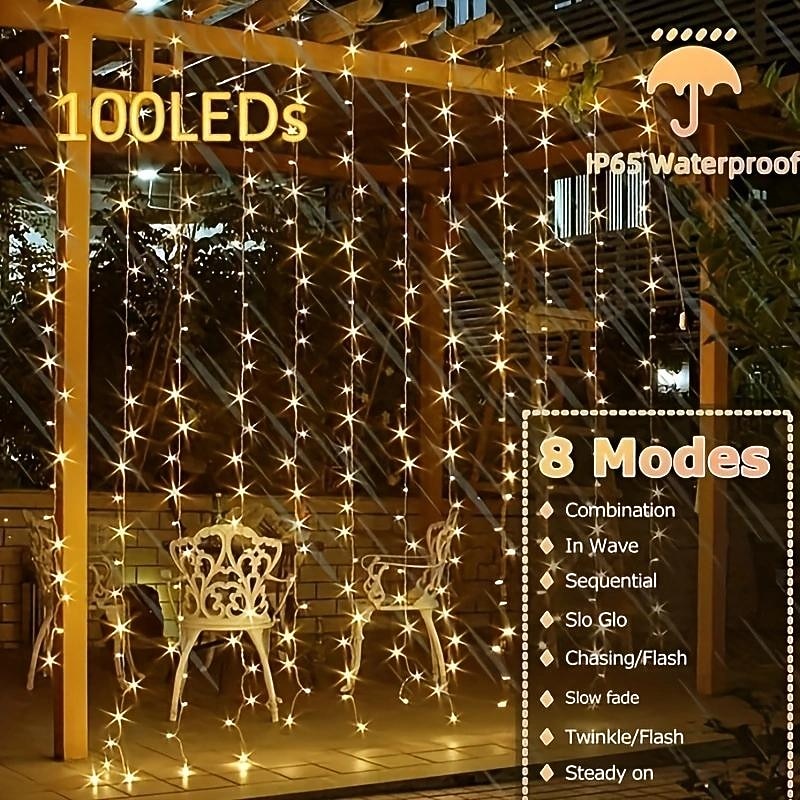 $11.49 - Outdoor Solar Curtain String Light, 3 * 3M-300LED/3 * 2M-200LED/3 * 1M-100LED, 8 Lighting Modes, IP65 Waterproof, Suitable for Home Garden, Porch, Backyard Wedding Parties, Thanksgiving Christmas 2025. Shop for cheap Solar String Lights online? Buy at lightinthebox.com on sale today!